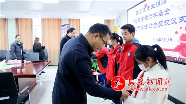 捐贈結(jié)束后,縣委常委、統(tǒng)戰(zhàn)部部長李俊代表縣委、縣政府對王文波先生這種主動擔(dān)當(dāng)作為的善行義舉表示感謝。希望學(xué)生要加倍珍惜這份關(guān)愛,不能因貧而自卑、自暴自棄,而是要把成長路上的磨難當(dāng)做磨煉意志的階梯,自信自強,成長成才。希望家長要盡職盡責(zé),幫助孩子成才;希望全體教育人也要常懷感恩之心,常存感激之情,珍惜今天良好的辦學(xué)條件,把社會各界的支持和鼓勵化作無窮的動力,不斷提升教育教學(xué)質(zhì)量,潛心鉆研教學(xué),以實實在在的業(yè)績回報組織、社會和企業(yè)家的關(guān)心和厚愛。最后,李俊要求:紅十字會、教體科技局以及家長要按照捐贈人意愿,公開、透明、規(guī)范管理捐贈善款,及時、準(zhǔn)確將善款用于愛心助學(xué),讓捐贈人放心,讓品學(xué)兼優(yōu)的貧困孩子受益。