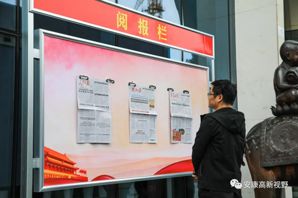 日前,在安康高新區(qū)的市民廣場(chǎng)、政務(wù)中心、公園綠地、大眾餐廳、居民社區(qū)等人口密集區(qū)域,承擔(dān)著“黨報(bào)指引方向,閱讀增添力量”宣傳教育功能的一個(gè)個(gè)“閱報(bào)欄”,讓廣大市民在享受物質(zhì)生活的同時(shí)更具精神追求,成為創(chuàng)建全國(guó)文明城市中一道道亮麗的風(fēng)景。