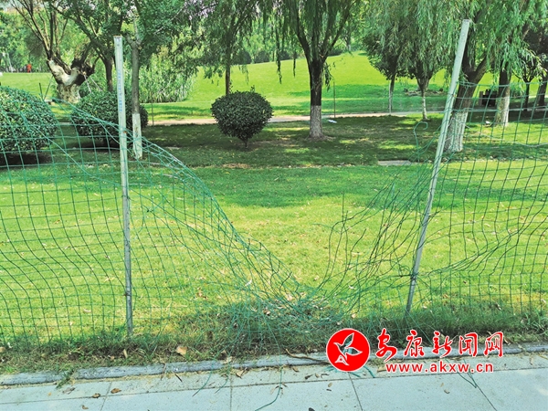 清明節(jié)期間,安康高新區(qū)運(yùn)動(dòng)公園內(nèi)5處圍網(wǎng)被游人破壞。(王琳 攝)