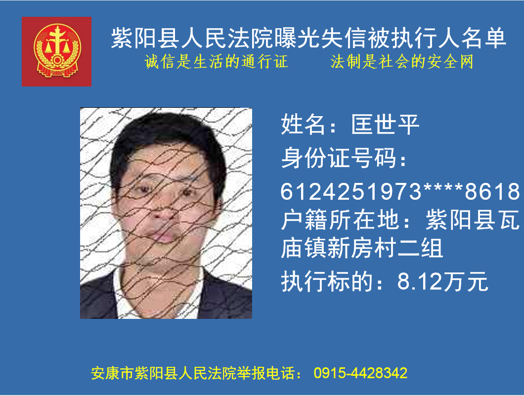 曝光失信 | 紫陽縣人民法院:關(guān)于敦促匡世平履行法定義務的公告