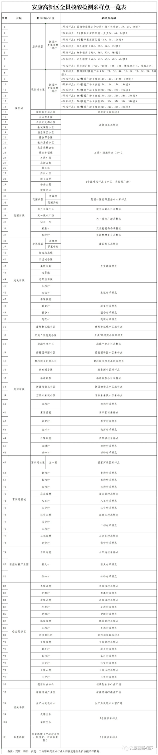 附件:安康高新區(qū)全員核酸檢測(cè)采樣點(diǎn)一覽表