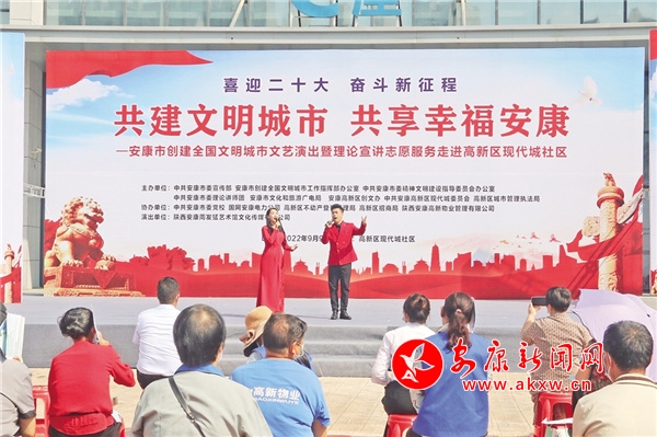9月9日,一場以“共建文明城市,共享幸福安康”為主題的文藝演出和理論宣講活動在高新現(xiàn)代城社區(qū)舉行。整場活動,除了有群眾喜聞樂見的文藝節(jié)目,還設(shè)置有創(chuàng)建知識問答互動和創(chuàng)文知識專題宣講?,F(xiàn)場,志愿者們還熱情地向群眾發(fā)放印有創(chuàng)文內(nèi)容的宣傳冊、涼扇、垃圾袋等,大家紛紛贊揚(yáng):“形式生動活潑,宣傳入腦入心!”