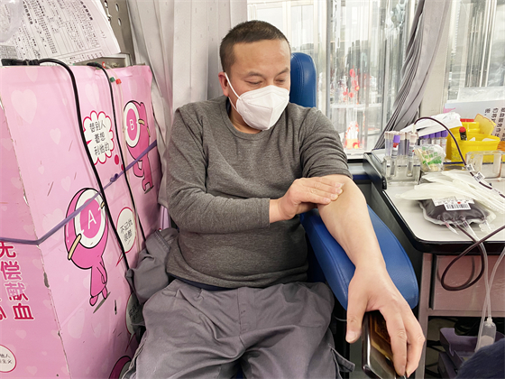 酒店廚師長段斌已經(jīng)是第五次進(jìn)行無償獻(xiàn)血了,他說,希望大家在身體條件允許的情況下,捐獻(xiàn)熱血、溫暖他人。