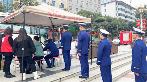 本次活動(dòng)特別邀請(qǐng)了黨的二十大代表、石泉縣體育運(yùn)動(dòng)管理中心教練員、安康市中心血站無(wú)償獻(xiàn)血形象大使夏江波,向平利青年發(fā)出無(wú)償獻(xiàn)血倡議,并來(lái)到獻(xiàn)血活動(dòng)現(xiàn)場(chǎng),與獻(xiàn)血青年合影留念。?