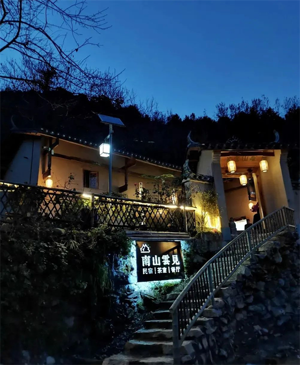 南山云見(jiàn)民宿共有11個(gè)陜南民居,集茶舍、住宿、餐廳、書(shū)院、美術(shù)館為一體,穿梭于鳳凰山中的康養(yǎng)文化健身步道,宛如一條絲線,串聯(lián)了大南溝的龍?zhí)?、龍隱谷、凈春山、講經(jīng)臺(tái)、逍遙石、明月寺、南山云見(jiàn)民宿等景點(diǎn)。