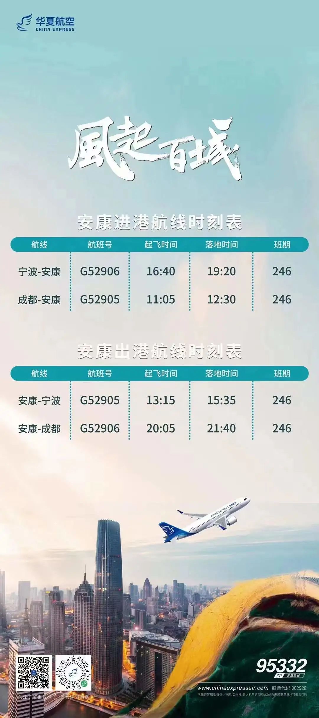 8月2日,據(jù)安康富強(qiáng)機(jī)場(chǎng)消息,8月15日起,安康將開通成都-安康-寧波航線,具體航班信息如下圖: