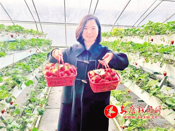 走進(jìn)大棚,草莓特有的清香味撲鼻而來,新型的鋼架種植平臺一線排開、高低錯落,一壟壟長勢茂盛的草莓秧苗嫩綠清新,一顆顆飽滿透紅的草莓點(diǎn)綴于綠葉之間,幾名游客正在仔細(xì)地采摘著成熟的果實(shí)。“這草莓聞起香,吃起來甜!在這采摘草莓還不用彎腰,不費(fèi)勁?!庇慰透吲空f。