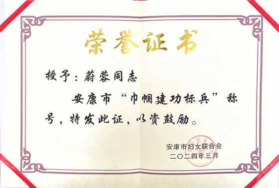 為表?yè)P(yáng)先進(jìn),樹(shù)立榜樣模范,在“三八”國(guó)際婦女節(jié)到來(lái)前夕,安康市婦聯(lián)印發(fā)了《關(guān)于授予李少華等68人安康市三八紅旗手 漢濱區(qū)融媒體中心等32個(gè)單位安康市三八紅旗集體稱號(hào)的決定》《關(guān)于授予成玉榮等73人安康市巾幗建功標(biāo)兵漢濱區(qū)檔案史志館等38個(gè)集體安康市巾幗文明崗稱號(hào)的通報(bào)》,安康市中心血站榮獲“市級(jí)三八紅旗集體”榮譽(yù)稱號(hào),供血科科長(zhǎng)蔚蓉同志榮獲全市“巾幗建功標(biāo)兵”榮譽(yù)稱號(hào)。