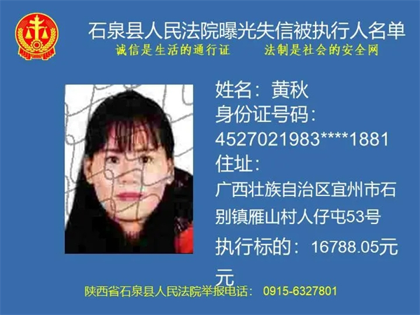 為了進(jìn)一步加大執(zhí)行力度,保障勝訴當(dāng)事人的合法權(quán)益,推進(jìn)社會誠信體系建設(shè),依照《中華人民共和國民事訴訟法》《最高人民法院關(guān)于公布失信被執(zhí)行人名單信息的若干規(guī)定》等法律、司法解釋的有關(guān)規(guī)定,現(xiàn)對一批已進(jìn)入執(zhí)行程序,且尚未全部履行義務(wù)的被執(zhí)行人進(jìn)行媒體曝光,歡迎廣大群眾支持石泉縣人民法院的工作,向我院提供被執(zhí)行人的財(cái)產(chǎn)線索,使生效法律文書能夠得到切實(shí)執(zhí)行,讓人民群眾切實(shí)感受到公平正義就在身邊。