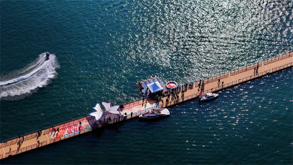 游客輾轉(zhuǎn)至瀛湖浮橋,水上運(yùn)動中心也已喬遷至此。精彩刺激的水上項目,吸引了年輕人的極大興趣。水上摩托艇、水上陀螺、水上拖傘。以及靜態(tài)水域的水上滾筒、水上皮劃艇、水上手搖船,都成了游客今年第一次親水的最佳載體,怎一個酣暢了得。