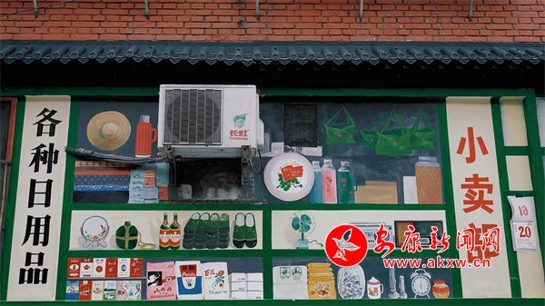 一支畫筆,一面白墻,一墻一風(fēng)景,一墻一文化,不經(jīng)意間,某個(gè)轉(zhuǎn)角就能與斑斕的墻繪撞個(gè)滿懷。漫步在漢濱區(qū)老城街道大北街,色彩斑斕的街道給這座城市的街巷生活增添了一絲色彩和靈魂。上世紀(jì)六七十年代的小賣部、照相館、電影院、二八大杠自行車等元素……一幅幅充滿鄉(xiāng)愁記憶的彩繪,讓冰冷的街道逐漸生動(dòng)活潑起來。(通訊員 張敏 張媛)