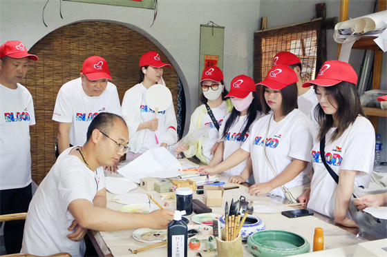 下午,大家來到石泉縣中壩作坊小鎮(zhèn),制作漆扇、泥塑,體驗傳統(tǒng)手藝的樂趣,感受非遺文化的魅力。拓展游戲環(huán)節(jié),全體隊員按照教練指令進行分組,兩人三足、跳大繩等趣味活動,既鍛煉了團隊的默契度,也增進了相互間的了解。