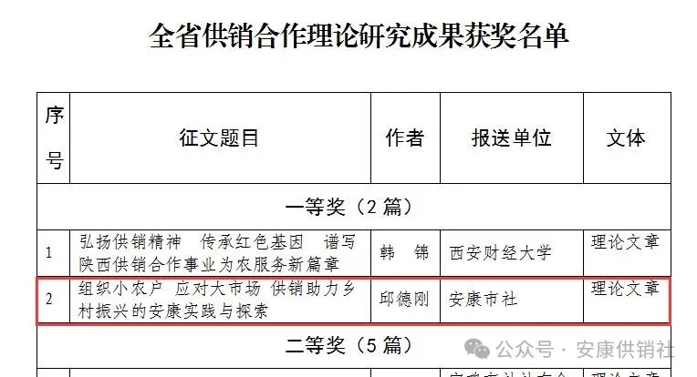 按:本文系安康市供銷合作社黨組書記、理事會(huì)主任邱德剛署名理論文章,立足供銷助力鄉(xiāng)村振興的安康實(shí)踐與探索,深入闡述了“組織小農(nóng)戶應(yīng)對(duì)大市場(chǎng)”的內(nèi)在邏輯,把群眾“組織起來(lái)”投身經(jīng)濟(jì)合作的實(shí)踐方法,在助力鄉(xiāng)村振興、推進(jìn)共同富裕實(shí)踐中探索出一條可復(fù)制可推廣的典型經(jīng)驗(yàn),其理論內(nèi)涵、實(shí)踐邏輯為在推進(jìn)鄉(xiāng)村振興中更好發(fā)揮供銷社的獨(dú)特優(yōu)勢(shì)和重要作用提供了有益參考,具有較強(qiáng)的指導(dǎo)意義。該文在中華全國(guó)供銷總社和陜西省供銷總社“薪火相傳七十載,砥礪奮進(jìn)新時(shí)代”主題征文中獲評(píng)“全省供銷合作理論研究成果一等獎(jiǎng)”。