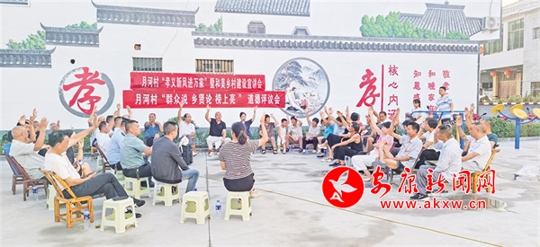 在今年的每一次道德評議會上,月河村干部和鄉(xiāng)賢能人都積極宣講村莊發(fā)展規(guī)劃以及孝善行為的重要性,宣講團(tuán)成員詳細(xì)解讀孝義文化,帶動村民踴躍參與“五美庭院”創(chuàng)建。在此過程中,“說論亮”道德評議制度有效運(yùn)行;“群眾說”讓大家暢所欲言,把村里的大小事擺到臺面;“鄉(xiāng)賢論”借助鄉(xiāng)賢的智慧與威望分析問題、化解矛盾;“榜上亮”則讓好與壞一目了然,便于群眾監(jiān)督。特別是,為激勵村民見賢思齊,學(xué)典型、爭先進(jìn)、樹文明,月河村利用孝義文化長廊、宣傳欄、道德講堂等載體,把評選出來的道德典型事跡“上榜、上墻”,形成示范引領(lǐng)效應(yīng),讓良好道德品質(zhì)看得見、摸得著,進(jìn)一步激發(fā)村民的主人翁意識,讓移風(fēng)易俗的觀念深入人心。