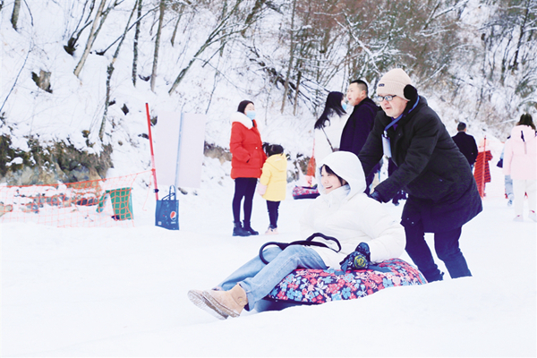 雪場上,滑雪、嬉雪、賞雪等多種冰雪項目讓偌大的滑雪場充滿笑聲、歡呼聲,景區(qū)內熱鬧非凡。