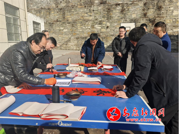 1月20日,旬陽市司法局、旬陽市文聯(lián)、旬陽市書法協(xié)會、旬陽市楹聯(lián)學(xué)會組織書法家,走進銅錢關(guān)鎮(zhèn),為廣大群眾義寫蛇年喜慶春聯(lián),獻上新春祝福?;顒蝇F(xiàn)場,書案一字排開,書法家們揮毫潑墨,以“?!弊钟麻_筆,行、隸、楷等多種筆體各顯神韻。此次活動義寫春聯(lián)及福字500余幅,為現(xiàn)場群眾送去一份別有新意的新春禮物和美好祝愿。(通訊員 石佩)?
