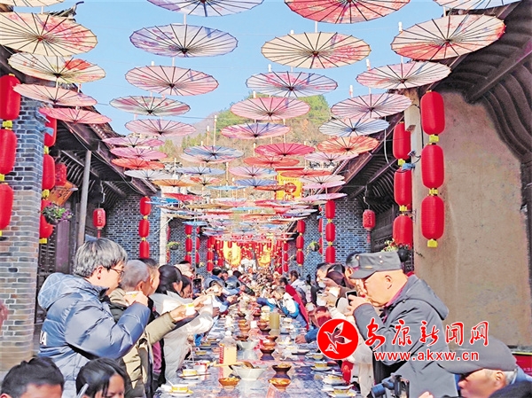 “觀眾朋友們大家好,這里是雙河口古鎮(zhèn),歡迎大家來(lái)到庖湯桌宴的活動(dòng)現(xiàn)場(chǎng)!”冬季庖湯長(zhǎng)桌宴的舉辦地,是修葺一新的驛道文化廣場(chǎng),游客在這里觀看精彩的文藝節(jié)目,品嘗本土特色美食,欣賞茶馬古道歷史浮雕,品味雙河口魅力故事。該項(xiàng)目是2024年7月19日洪災(zāi)后,為修復(fù)損壞的護(hù)坡,依托現(xiàn)有地形條件,盤(pán)活原有閑置資源重新改造的文化廣場(chǎng)項(xiàng)目,于當(dāng)年10月1日建成投用。項(xiàng)目建成后,古鎮(zhèn)的景區(qū)框架拉得更寬,文化活動(dòng)載體變得更大,文化內(nèi)容展示更加生動(dòng),配合12月31日建成投用的省級(jí)鄉(xiāng)村振興示范鎮(zhèn)展陳室項(xiàng)目,雙河口的歷史文化和人文故事變得可感可知,成為古鎮(zhèn)一處新的地標(biāo)性“打卡地”。
