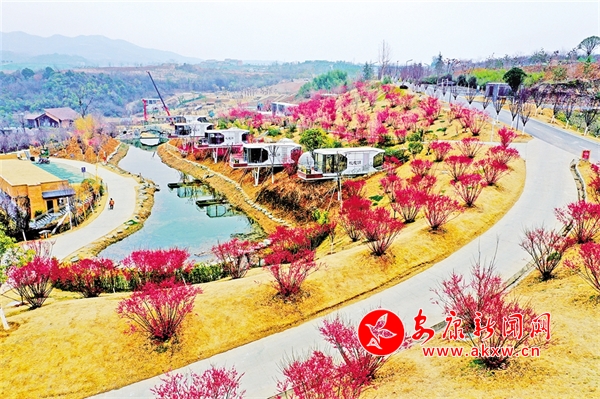 安康高新區(qū)桃花源,梅花與露營(yíng)地星空房、湖溪亭榭相映成畫(huà)。詹永桂 攝
