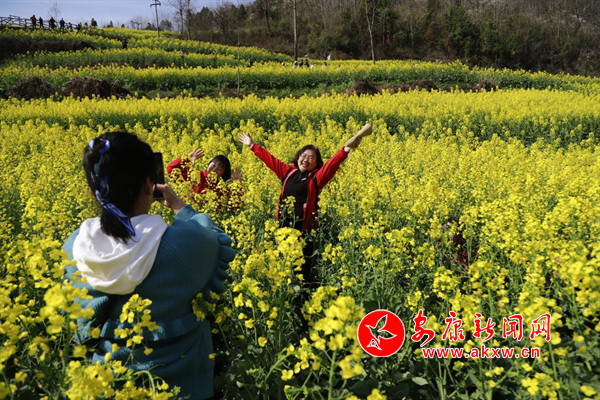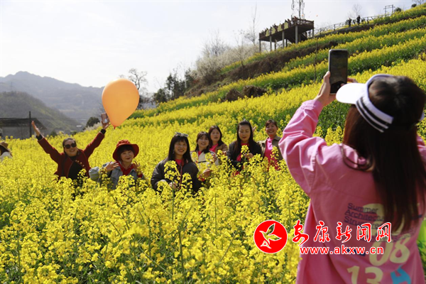 陽(yáng)春三月,嵐皋縣城關(guān)鎮(zhèn)水田村1000畝繁茂的油菜花海,為大地迅速披上一層金色的盛裝,吸引眾多的游客紛紛前來觀光旅游,分享陽(yáng)春三月、鳥語(yǔ)花香的鄉(xiāng)間美麗景色。(攝影 廖霖)?