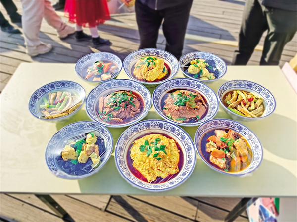 當地“十大碗”又稱“片碗子席”,其中紅片兩碗,白片兩碗、燴菜四碗,小炒兩碗。清真“十大碗”制作技藝、食材考究,煮肉、片碗、清蒸等環(huán)節(jié)非常關鍵。