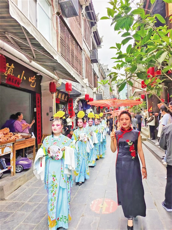 “過去總說‘捧著金飯碗要飯’,現(xiàn)在我們讓老手藝成了新飯碗。”古鎮(zhèn)“裕慶和”店面里,負責人李俊沏上一壺富硒茶,忍不住發(fā)出感嘆。這位扎根故鄉(xiāng)創(chuàng)業(yè)傳承非遺的“領頭雁”,將祖?zhèn)鞯陌舜蠹缦蛟斐闪裂勖?。他開發(fā)的“古鎮(zhèn)兩日游”線路,將美食體驗與民宿客棧、茶社書院有機結合,年接待游客上萬人次。
