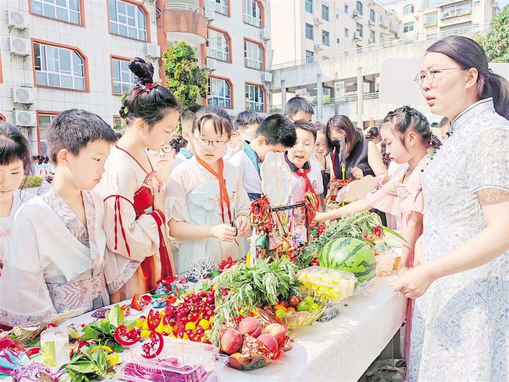 活動(dòng)中,學(xué)校精心布展了端午傳統(tǒng)習(xí)俗和端午文化活動(dòng)體驗(yàn)區(qū),小小講解員身著傳統(tǒng)服飾,為師生講解端午節(jié)的來(lái)歷、傳統(tǒng)習(xí)俗以及粽子的制作方法,還通過(guò)射五毒、投壺、套圈等傳統(tǒng)游戲,讓同學(xué)們深入了解端午文化內(nèi)涵與魅力。此外,學(xué)校邀請(qǐng)漢濱區(qū)中醫(yī)醫(yī)院的醫(yī)師走進(jìn)校園,為師生們講授中醫(yī)藥文化,制作傳統(tǒng)中藥香囊,在實(shí)踐中感受中醫(yī)藥文化魅力。