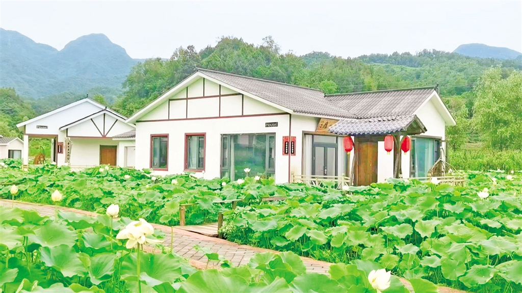 “平時我們住城里,每逢周末回老家,看到村里的外地游客很多,我們就把舊房子從平房加蓋成兩層,樓上是民宿,樓下是農(nóng)家樂。今年4月份開業(yè)的,‘五一’和端午節(jié)客流量都不錯,客房爆滿?!闭劶澳壳暗纳?,譚世巧笑容滿面。