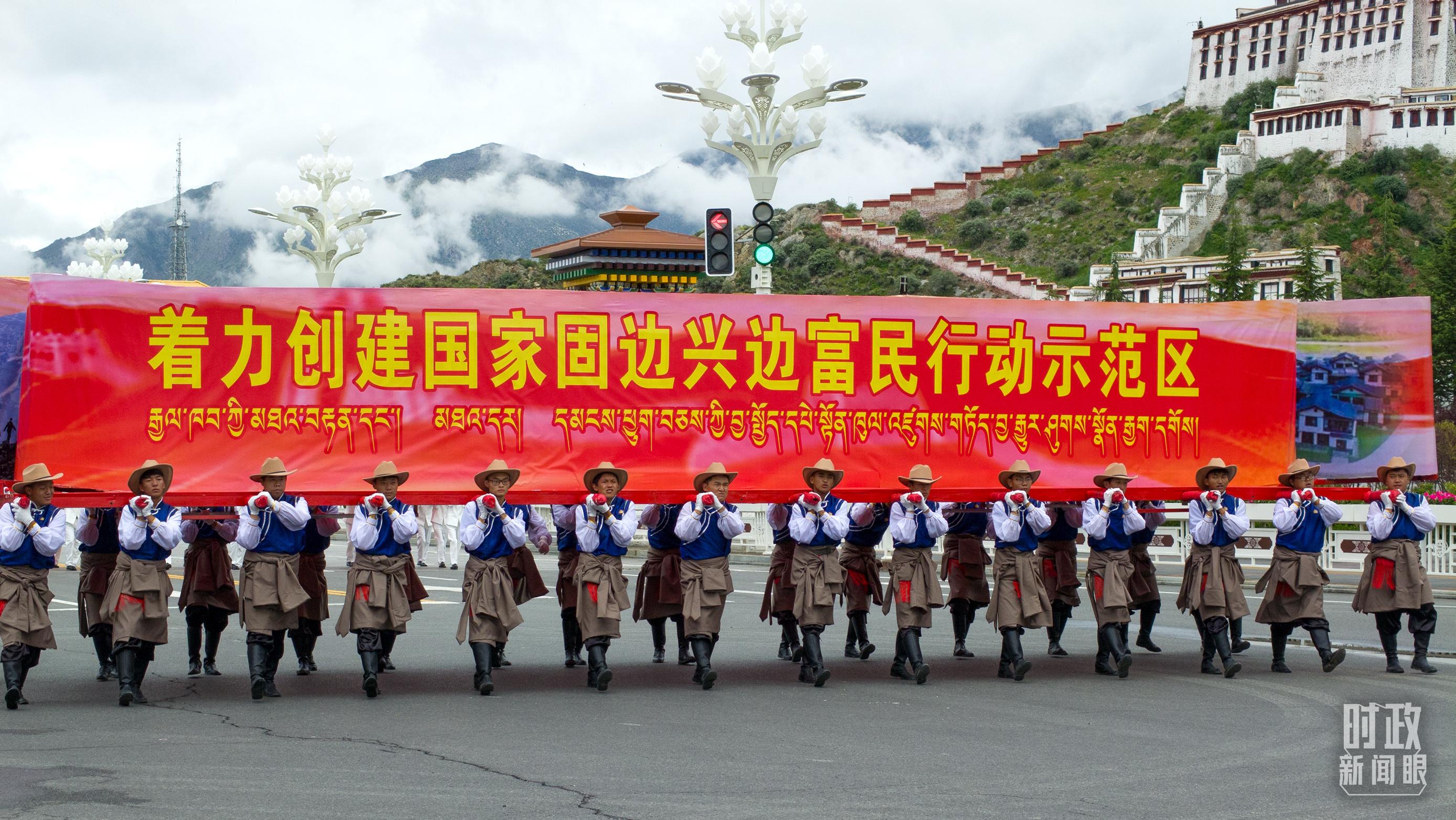 在慶祝大會的群眾游行環(huán)節(jié),“四件大事”單元展示了西藏自治區(qū)“四個創(chuàng)建”的奮斗目標(biāo):著力創(chuàng)建全國民族團結(jié)進步模范區(qū)、著力創(chuàng)建高原經(jīng)濟高質(zhì)量發(fā)展先行區(qū)、著力創(chuàng)建國家生態(tài)文明高地、著力創(chuàng)建國家固邊興邊富民行動示范區(qū),分別對應(yīng)穩(wěn)定、發(fā)展、生態(tài)、強邊四件大事。