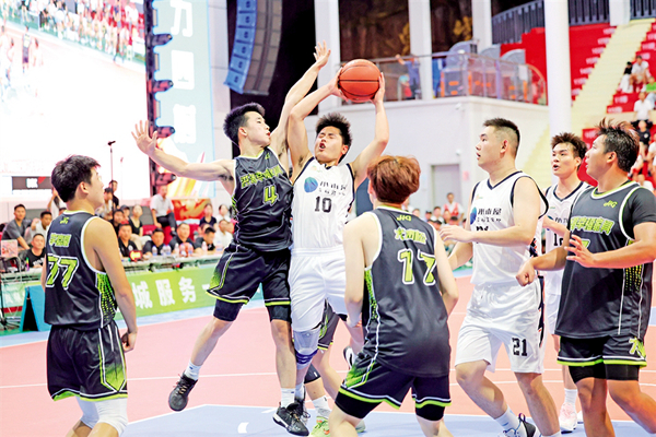 安康企協(xié)桃花源代表隊(duì)在外籍球員CJ·特羅特和賈森·漢尼拔的帶領(lǐng)下一度領(lǐng)先12分,南宮山代表隊(duì)球員在主力隊(duì)員梁歡、朱思禹先后受傷的不利局面下,由彭博帶領(lǐng)球隊(duì)艱難咬住比分。距離全場(chǎng)比賽結(jié)束9.8秒,南宮山代表隊(duì)3號(hào)隊(duì)員李子豪外線一記精準(zhǔn)的3分把比分追至78平,這是兩隊(duì)比分首次打平。CJ·特羅特后場(chǎng)接球,直插籃下,轉(zhuǎn)身后仰,將比分反超2分,留給南宮山隊(duì)3.2秒。南宮山代表隊(duì)4號(hào)球員彭博一記長(zhǎng)傳跨過半場(chǎng),精準(zhǔn)找到了6號(hào)球員韓邦,上籃,80分平,加時(shí)賽,球場(chǎng)響起山呼海嘯的歡呼。加時(shí)賽中,南宮山代表隊(duì)用一次次精準(zhǔn)的投籃、拼盡全力的防守,最終以93:88的比分奪得冠軍。