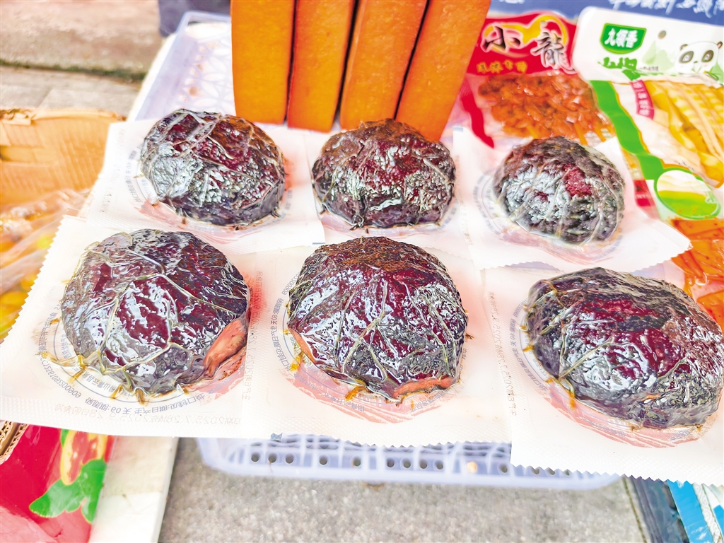 歲末年初的漢陰市集上,血豆腐干總是占據(jù)著醒目位置。店家將成品切成薄片供人品嘗,那深紅的色澤、獨(dú)特的香氣,總能吸引外地游客駐足。如今,這道源自民間的美食正走出大山,受到越來(lái)越多人的青睞。而每年春天,在外出務(wù)工者的行囊中,也總會(huì)有血豆腐干的一席之地,這些帶著煙火味的土特產(chǎn),跟隨著游子的腳步行至天涯海角,每當(dāng)思鄉(xiāng)情切時(shí),嘗一口血豆腐干,便是最好的鄉(xiāng)愁慰藉。