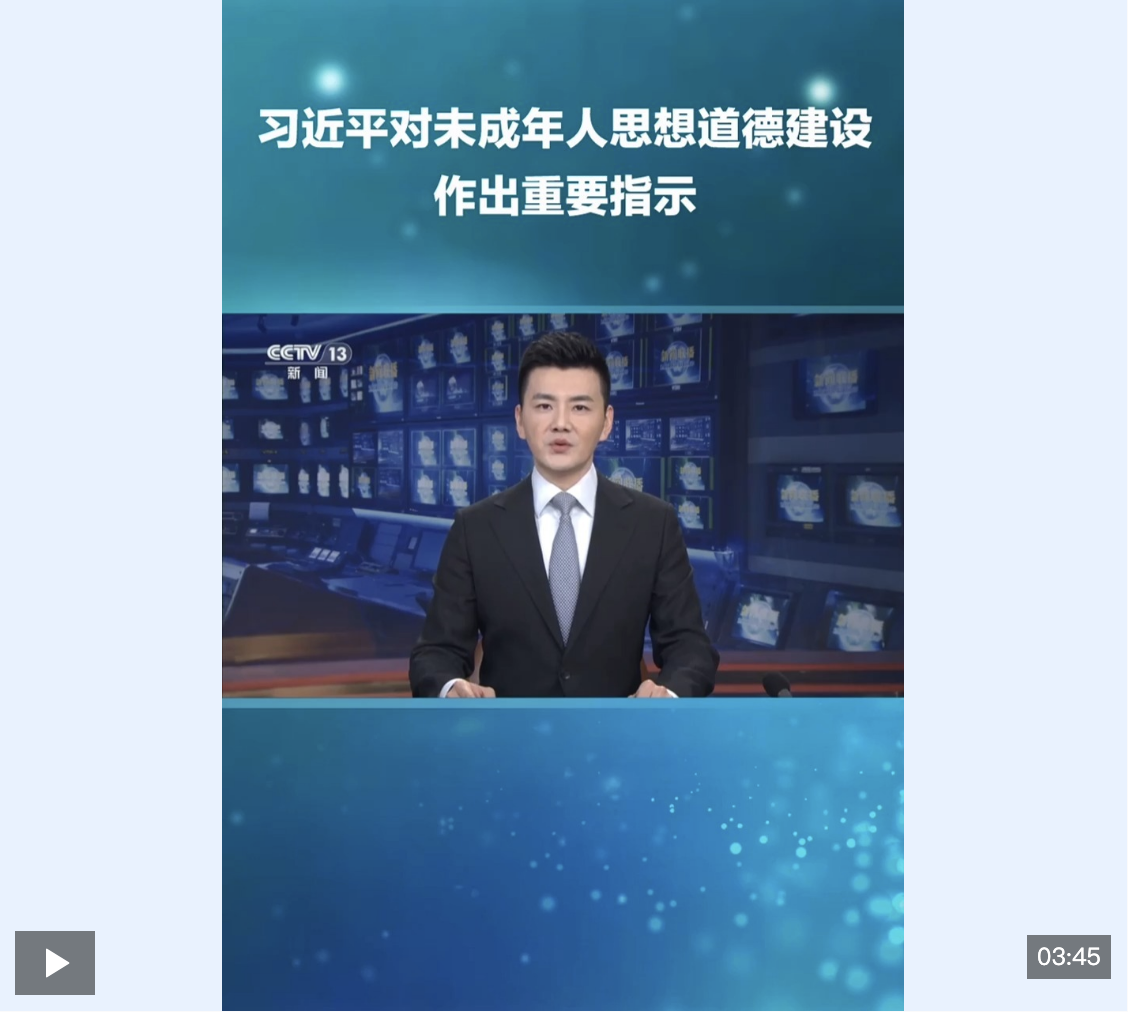 把加強未成年人思想道德建設定位為戰(zhàn)略性、基礎性工作,彰顯的是總書記對這項工作的高度重視。要做好這項工作,總書記強調各方要形成合力,一方面是健全學校家庭社會協(xié)同育人機制。這當中,學校要以德育為先,承擔起育人的主體責任;家庭教育發(fā)揮的是基礎作用;社會層面,要積極營造良好的社會文化環(huán)境,努力為孩子們創(chuàng)作生產(chǎn)好的文化產(chǎn)品。