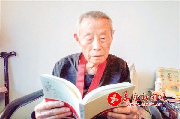 93歲的鄺民三仍舊耳聰目明,閱讀無(wú)障礙。