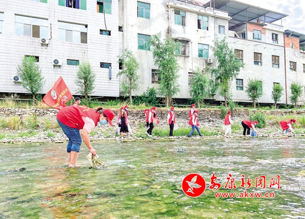 每月1日和15日是旬陽市雙河鎮(zhèn)高坪社區(qū)護河隊長朱先萍和姐妹們的戶外活動日。一大早她們會套上膠鞋、穿上紅馬甲拿上火鉗、鐵鏟等工具接二連三地從家中出發(fā)再匯聚到當天的活動地點等待隊長分配具體任務。