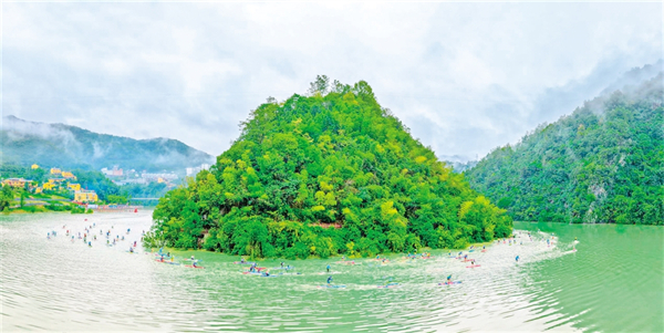 10月5日,嵐皋縣舉辦2025中國嵐韻“夢見蓬萊杯”歡樂槳板大獎賽,吸引眾多游人前來觀賽觀光。唐軍 攝9KX安康新聞網(wǎng)