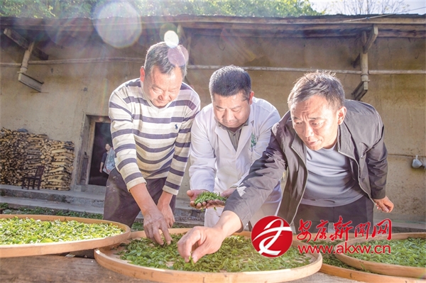 “十四五”期間,我市持續(xù)推進(jìn)茶產(chǎn)業(yè)發(fā)展,努力實(shí)現(xiàn)茶產(chǎn)業(yè)“四時(shí)有收”。圖為紫陽白茶非遺制作技藝代表性傳承人在高橋鎮(zhèn)裴壩村,向茶農(nóng)推廣紫陽白茶非遺制作技藝。 李勝璋 攝