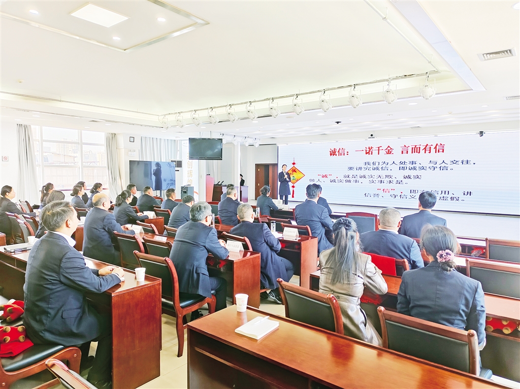 本網(wǎng)訊(記者 唐正飛 通訊員 楊光婷)“我們?yōu)槿颂幨隆⑴c人交往,要講究誠信,即誠實守信……”11月21日,中國工商銀行安康分行會議室一場“以誠立身,以信致遠(yuǎn)”主題宣講會正在火熱進(jìn)行。工作人員化身誠信“宣講員”,解讀“誠信”內(nèi)涵,分享踐行誠信故事。