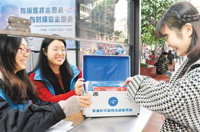 12月10日,上海首個“學(xué)雷鋒志愿者服務(wù)站”亮相南京路步行街。圖為兩位志愿者在為路人提供服務(wù)。z2i安康新聞網(wǎng)