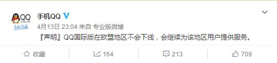 【傳聞】由于歐盟的《通用數(shù)據(jù)保護條例》將于5月25日正式生效,QQ國際版將從5月20日后不再為歐洲用戶提供服務。