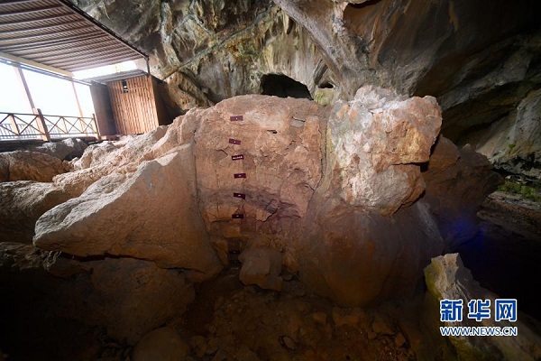 這是位于福建省三明市三元區(qū)巖前鎮(zhèn)的萬(wàn)壽巖國(guó)家考古遺址公園船帆洞洞口的考古發(fā)掘土層(11月24日攝)。新華社記者 姜克紅 攝