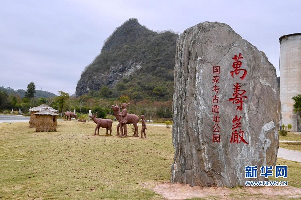 這是位于福建省三明市三元區(qū)巖前鎮(zhèn)的萬(wàn)壽巖國(guó)家考古遺址公園石碑及雕塑(11月24日攝)。新華社記者 姜克紅 攝