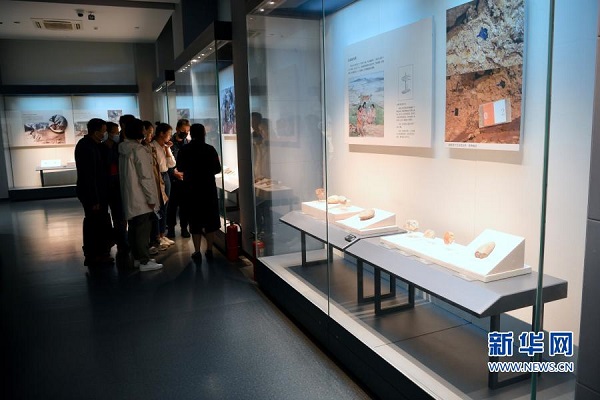 參觀者在位于福建省三明市三元區(qū)巖前鎮(zhèn)的萬(wàn)壽巖遺址博物館內(nèi)參觀(11月24日攝)。新華社記者 姜克紅 攝