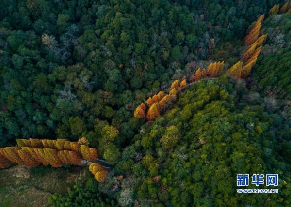 這是11月19日拍攝的福建省三明市將樂縣國(guó)家級(jí)自然保護(hù)區(qū)水杉大道(無人機(jī)照片)。新華社記者 宋為偉 攝