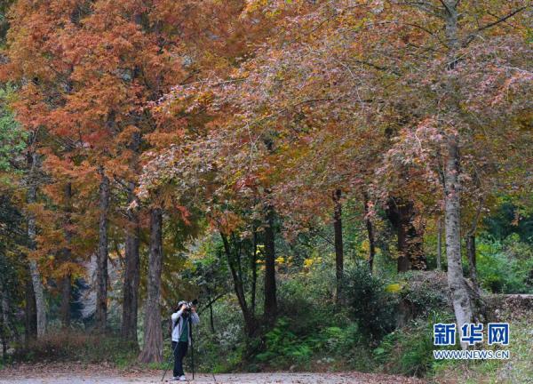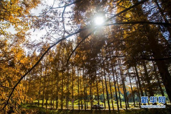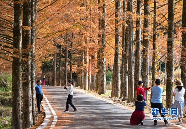 11月20日,游客在福建省三明市將樂縣國(guó)家級(jí)自然保護(hù)區(qū)水杉大道游覽。新華社記者 宋為偉 攝