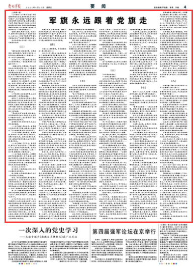 黨旗所指,軍旗所向。黨締造和領(lǐng)導(dǎo)的人民軍隊(duì),正在習(xí)近平強(qiáng)軍思想的指引下,闊步前進(jìn)在中華民族偉大復(fù)興的征途上。