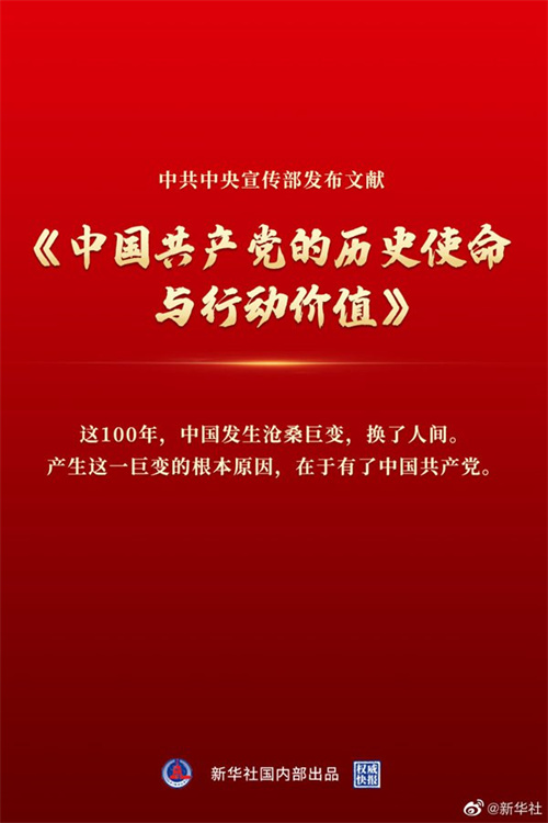 新華社北京8月26日電 中宣部26日發(fā)布文獻《中國共產黨的歷史使命與行動價值》。