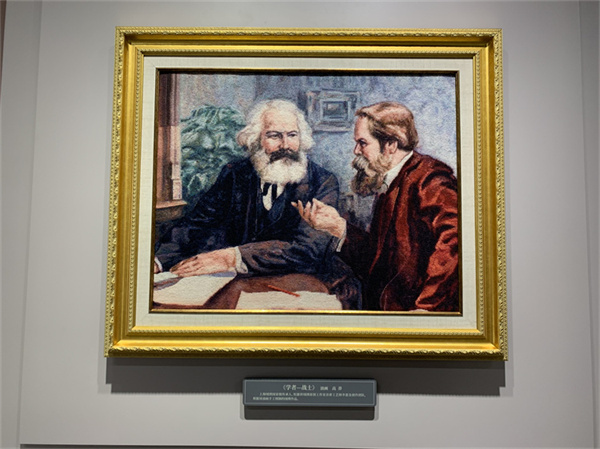 《共產(chǎn)黨宣言》1872年德文版序言中有一句名言,那就是“這些原理的實(shí)際運(yùn)用,正如《宣言》中所說的,隨時(shí)隨地都要以當(dāng)時(shí)的歷史條件為轉(zhuǎn)移”。這其實(shí)揭示了《共產(chǎn)黨宣言》的時(shí)代性與開放性。第六展廳的主題是“超越時(shí)空——《共產(chǎn)黨宣言》與人類未來”,展示的重點(diǎn)是“人類命運(yùn)共同體”大型浮雕。浮雕既寓意了中國(guó)共產(chǎn)黨所倡導(dǎo)的人類命運(yùn)共同體思想,更形象地詮釋了《共產(chǎn)黨宣言》的時(shí)代精神與強(qiáng)大魅力,以及不斷豐富和拓展的新的時(shí)代內(nèi)涵。