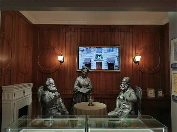 有了教學(xué)館,學(xué)員們不僅可以坐著聽,還必須站起來、走起來、看起來,不僅動(dòng)眼、動(dòng)耳、動(dòng)嘴,還要?jiǎng)邮、?dòng)腳、動(dòng)腦。課堂上、書本中的經(jīng)典著作看起來深?yuàn)W、高冷的理論“范兒”,因?yàn)橛辛?ldquo;場(chǎng)景”的植入與催化,以及學(xué)員的主動(dòng)參與而變得“很酷、很潮”,進(jìn)而變得“活”起來。比如,第一展廳重點(diǎn)展示了比利時(shí)白天鵝咖啡館的場(chǎng)景,再現(xiàn)馬克思和恩格斯當(dāng)年結(jié)下深厚友誼、聯(lián)手研究撰寫《共產(chǎn)黨宣言》的歷史情境。情境中,馬克思、恩格斯正在研討,燕妮則認(rèn)真傾聽、記錄。教學(xué)團(tuán)隊(duì)討論這個(gè)場(chǎng)景復(fù)原設(shè)計(jì)時(shí),國(guó)防大學(xué)政治學(xué)院馬克思主義理論系教授高民政提出,《共產(chǎn)黨宣言》本身就出自青年人之手,書寫了無(wú)產(chǎn)階級(jí)政黨的青春之歌,是無(wú)產(chǎn)階級(jí)政黨的青春宣言,我們的場(chǎng)景設(shè)計(jì)也要體現(xiàn)出這樣的時(shí)代氣息。