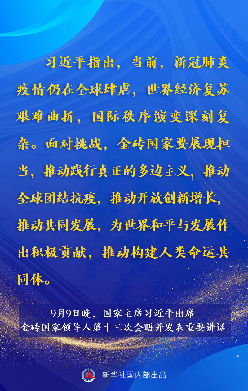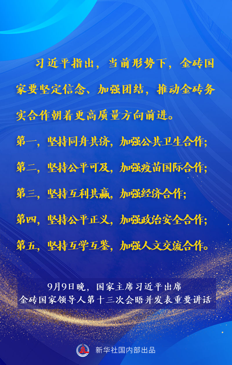 金磚國家領導人第十三次會晤9日晚以視頻方式舉行。國家主席習近平出席會晤并發(fā)表題為《攜手金磚合作 應對共同挑戰(zhàn)》的重要講話。講話有哪些主要內容,一起來看。 yny安康新聞網(wǎng)