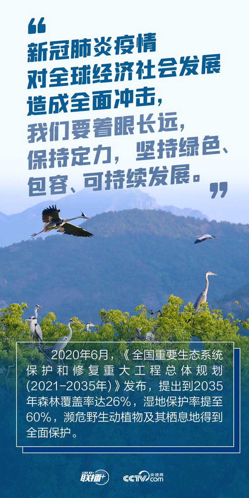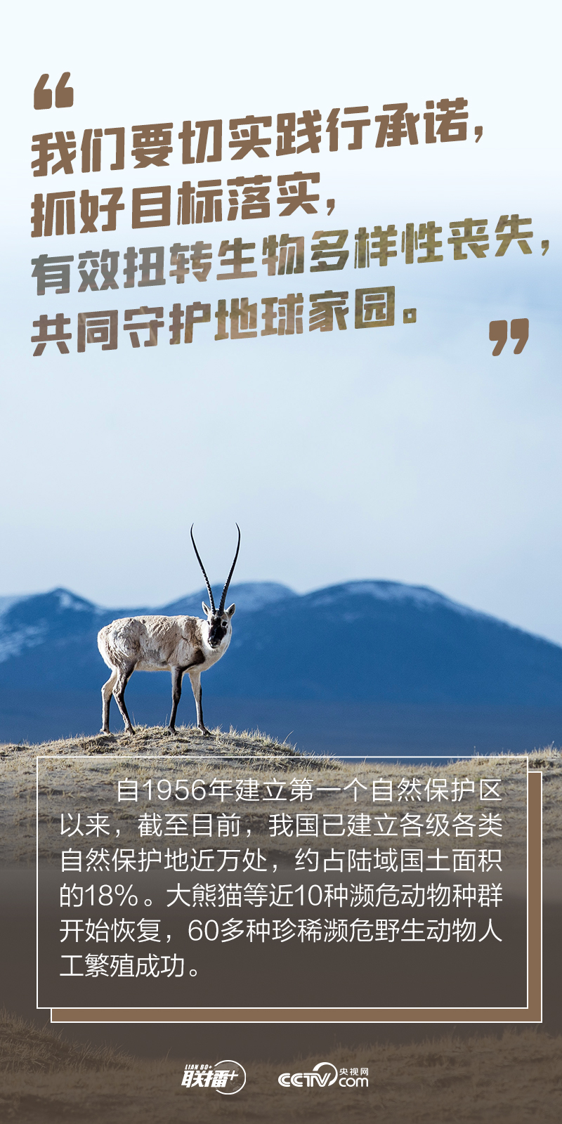 10月11日至15日,聯(lián)合國《生物多樣性公約》締約方大會第十五次會議(簡稱COP15)第一階段會議將在云南昆明舉行。央視網(wǎng)《聯(lián)播+》特擷取總書記關(guān)于生物多樣性保護(hù)的論述,回顧我國踐行“綠色之諾”取得的實(shí)效,與您一起堅(jiān)定尊重自然、順應(yīng)自然、保護(hù)自然的決心,共繪人與自然和諧共生的動人畫卷。
