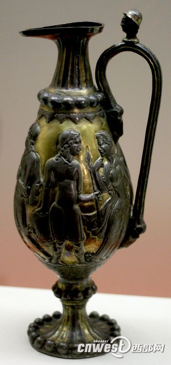10月11日,據(jù)陜西歷史博物院官方透露,這件中國人收藏的雕刻有希臘神話故事的波斯鎏金銀瓶已經(jīng)來到西安,將和其它140件來自西北五。▍^(qū))的絲綢之路主題文物一道,亮相10月17日開展的《長安絲路東西風(fēng)》展上。